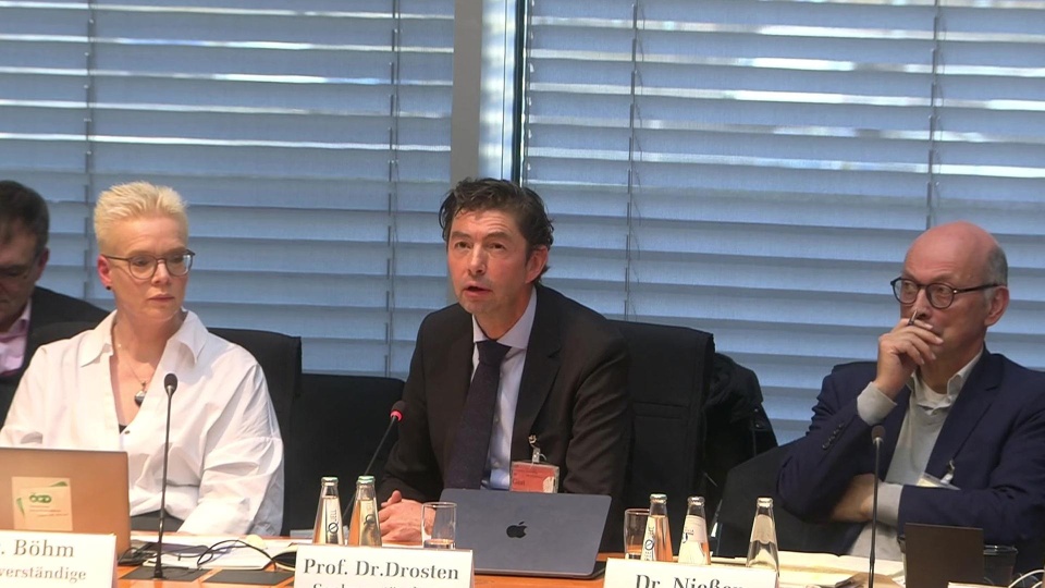 “A questão é mais complexa e não há tempo aqui para respondê-la “, disse o Dr. Drosten ao ser interrogado no início de Dezembro de 2025. Em 2020 e 2021 ele, que também dirige o Instituto de Virologia da prestigiada Faculdade de Medicina da Charité na capital federal, serviu como consultor especial do governo para a política da pandemia, pintando um quadro terrível de ficção científica em programas de rádio e televisão em cadeia nacional. Ele foi o maior defensor do uso do teste PCR como forma de detecção do Virus Corona, assim como da obrigatoriedade do uso de máscaras e claro da vacina como única solução para a crise.